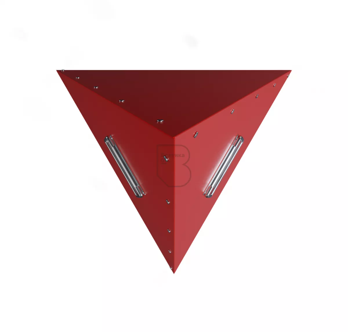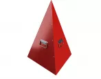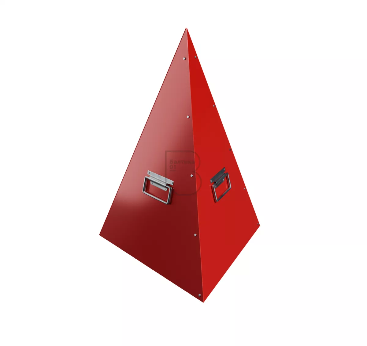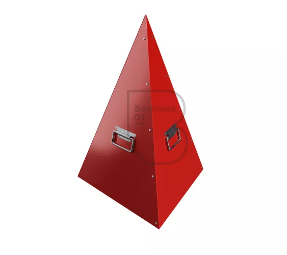 Пирамида для пожарного гидранта имеет треугольное основание, выполнена из металлических листов. Для удобства установки, переноски или снятия с колодца имеет по бокам ручки. Пирамида окрашена в сигнальный красный цвет, чем привлекает к себе внимание с большого расстояния, тем самым предостерегая от несчастных случаев при проведении работ.