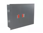 Дверцы пожарного шкафа открываются на 160 градусов. Имеют запорное устройство в виде пластиковой защелки.