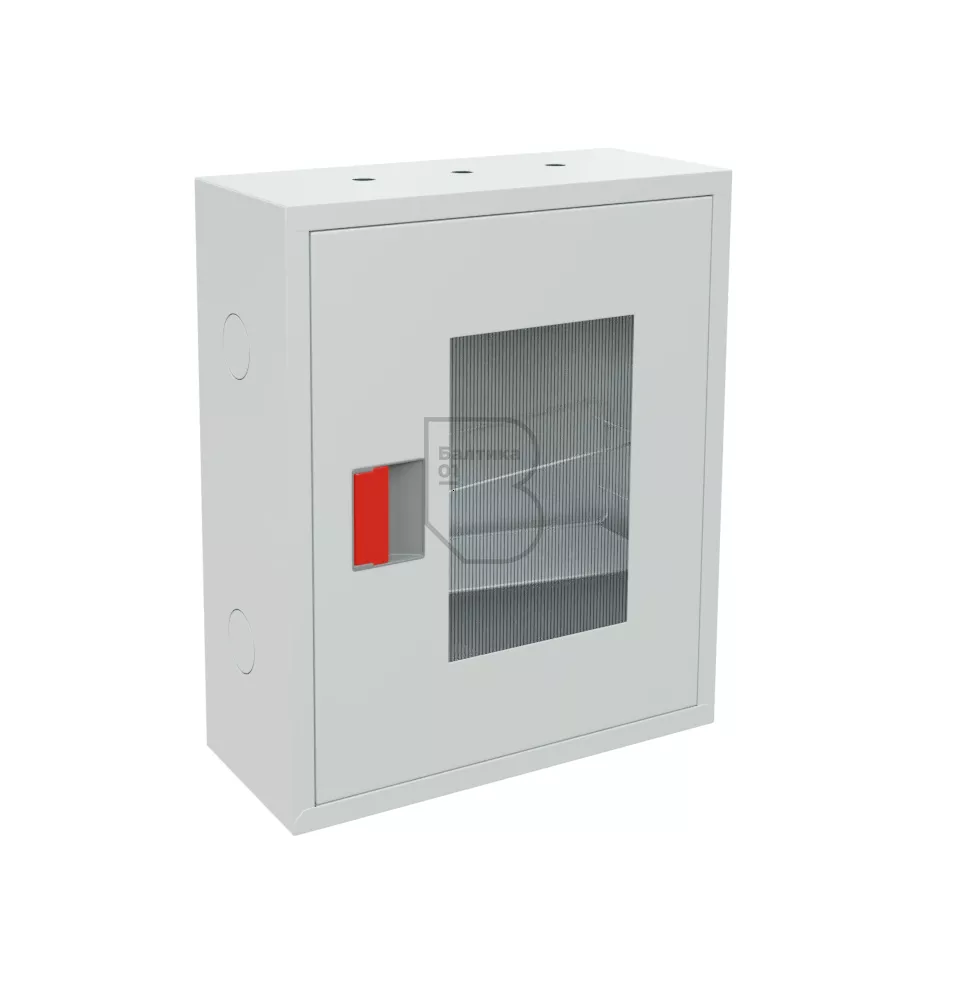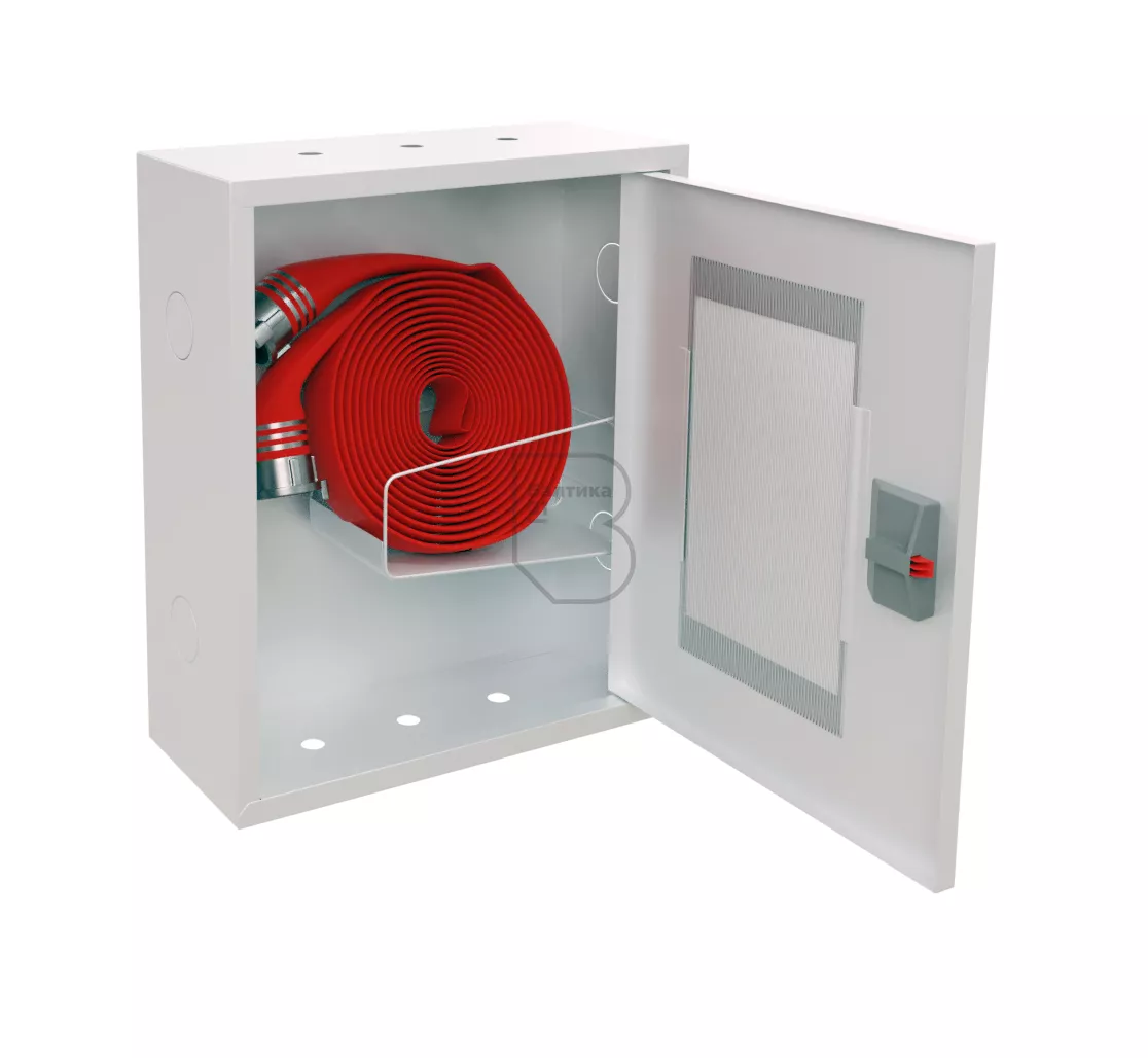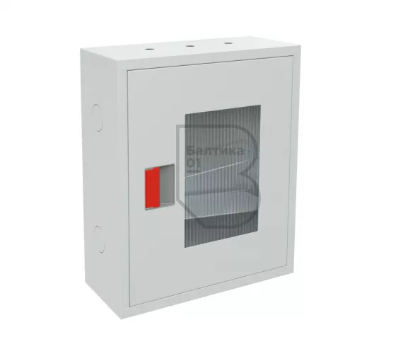 Дверца пожарного шкафа открывается на 160 градусов. Имеет запорное устройство в виде пластиковой защелки. На дверце имеется смотровое окно со вставкой из поликарбоната.