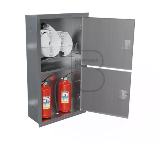 Шкаф пожарный ШПК-320-12 ВЗ из нержавеющей стали – предназначен для размещения и хранения двух рукавов пожарных в сборе, двух пожарных вентилей (клапанов) и двух огнетушителей до 10 кг. Шкаф оборудован двумя кассетами рукавными (в верхнем отсеке шкафа размещаются две кассеты).